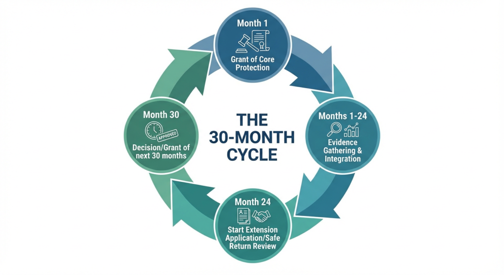 As of March 2026, that path has a new, much shorter first step. New refugees now receive 30 months of “Core Protection” at a time. This isn’t a permanent grant; it’s a temporary one.